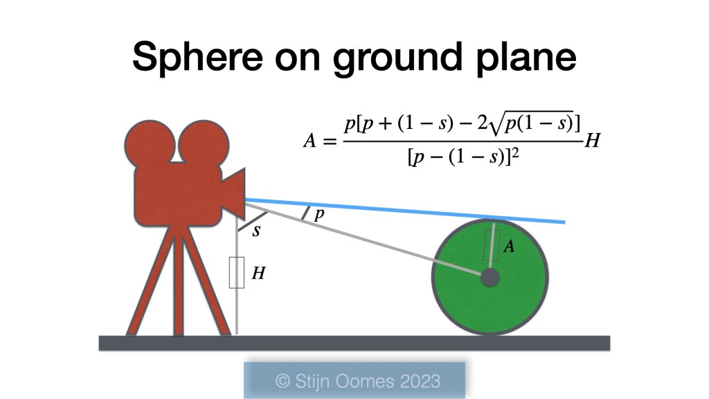 My goal is to find the size of the sphere expressed as the radius . There is a camera which has a known height from the ground plane that is denoted as