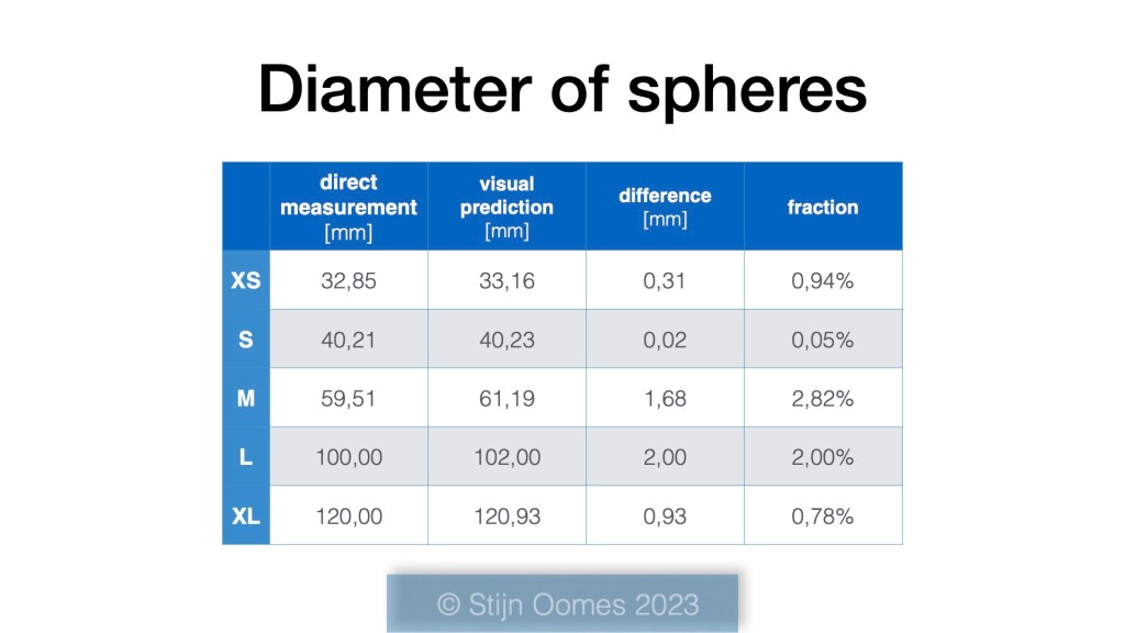 How does this compare to human perception of the size of these spheres?